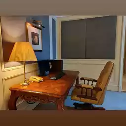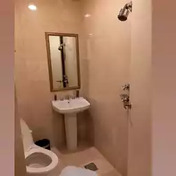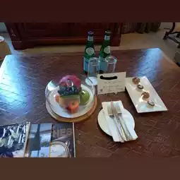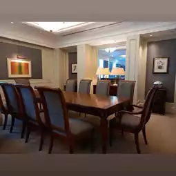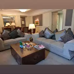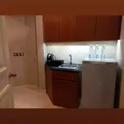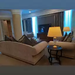 Complete with TV, welcome amenities, huge sofa, work table (with computer), huge dining table and chairs, fridge and mini kitchen at the side, toilet, and also small room for helper with shower room as well.