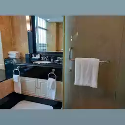 Living room area is huge, so does the toilet and bedroom. I feel so rich somehow. Thanks to my mariott ambassador friend. The room design is so elegant and luxurious although can be said very old. Shower complete with jacuzzi bathtub. Funny thing is that they don't have conditioner in room. ๐