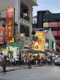 This area is Chinatown in Kuala Lumpur, a district filled with restaurants, cafes, and shops similar to Sampeng Market. There’s also a shopping mall nearby.