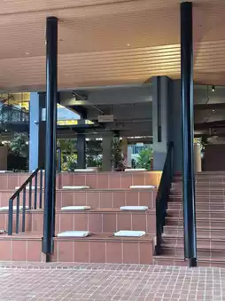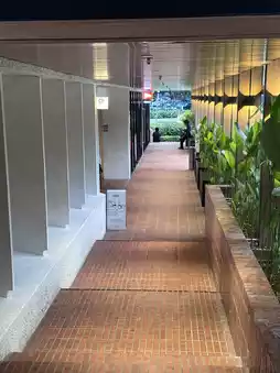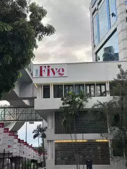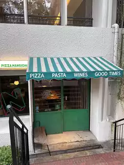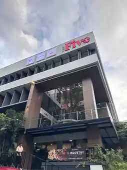 This building is called The Five, and it houses a famous restaurant, Pizza Mansion. This restaurant has received numerous reviews.
