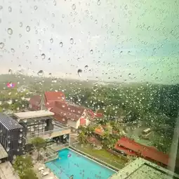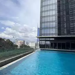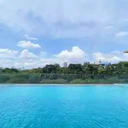 At last, the swimming pool is on the 6th floor that you can swimming with beautiful KLCC city view~ At the morning time sun and rain comes together…. And a rainbow appearance far away from the hotel.