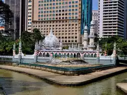 Masjid Jamek is one of the oldest mosques in the country, located in the center of Kuala Lumpur. It was officially opened in 1909, two years after the completion of construction. Located at the confluence of the Klang River and Gombak River, the mosque stands over the city's first Malay cemetery. This mosque was built under the influence of Islamic architecture in India.