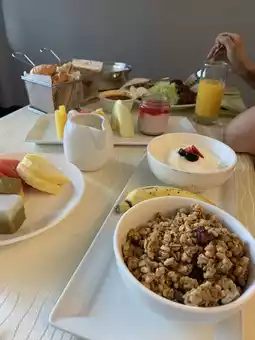 Food & Restaurant: There was a restaurant and a rooftop bar in the hotel. Breakfast was not included, so I ordered room service, which was delicious and the price was about 2,000 yen for everything in the photo.