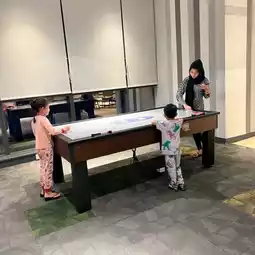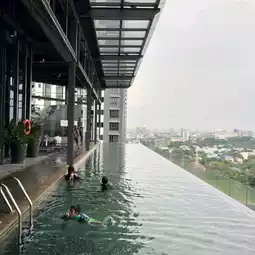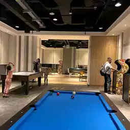 They have game base where you can play ping pong, pool, arcade and even ice hockey and others! There's also communal spaces, community kitchen for you to prep meals and cook, laundromat, gymnasium, Komune cafe and infinity pool!