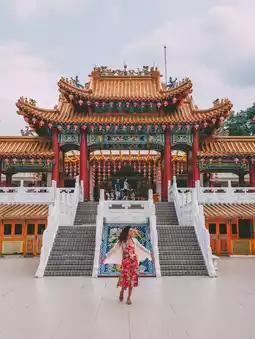 Thean Hou Temple is one of the oldest Chinese temple in Southeast Asia. When we first arrived I didn’t know what to expect. We went there before lunch time and we thought that it would be crowded but not at all! It was really empty and we were the only tourist there.