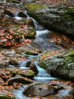 Personally, I think this section should be the most beautiful part of the scenic area, passing by more than 20 attractions including the Magpie Bridge, the Glass Skybridge, the Skybridge Buddha, the Maple Leaf Park, and the Longevity Spring. The entire plank road was built along the mountain stream, crossing the dense forest, undulating and winding, passing through the colorful forest, with red leaves all along the way.