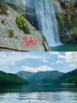 🌸Feipujian: A unique feature of Qingshan, the waterfall cascades down a 32-meter-high fault cliff, creating a breathtaking spectacle.