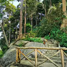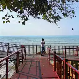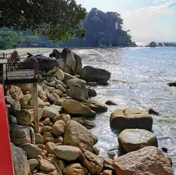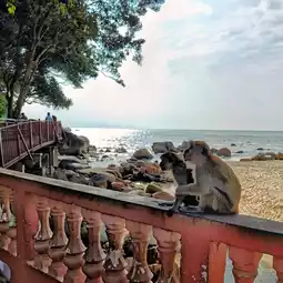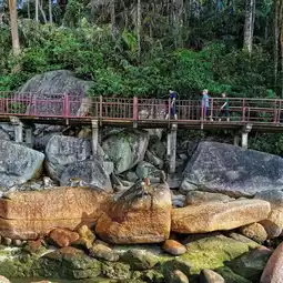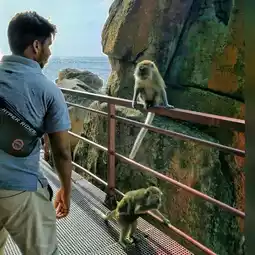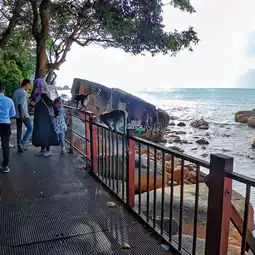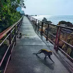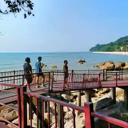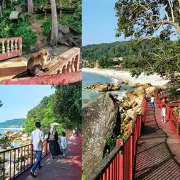 At its west end, a boardwalk leads to Teluk Tongkang, plenty of monkeys loitering along the boardwalk. There are also several hiking trails and lookout points in the area that offer panoramic views of the beach and its surroundings.