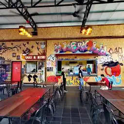 Really love the churros here. Satay, corn dog, mee celup and the burger. Repear twice when I was at kuantan. Spacious place is just the surau very small and have to share with men. Shd improve on surau#yearofrabbit #newyearadventure #tripblazers #awesomepic #couplestrip