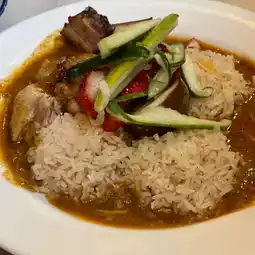 Main focus is Hainan Chicken Rice, BBQ rice and curry at lunch. They have Butter Coffee which is essentially a slab of butter in your coffee.