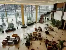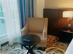 Rooms are exceptional — well-designed and cozy, with a touch of fine furniture and smart room features. The toilet is modern and clean. The view from the room is spectacular at night — gazing at planes taking off and land. Super friendly, approachable and accommodating hotel receptionist and staffs — smiles and greetings are reciprocated. The men pool, however, is quite small, and the changing room is spooky, with empty unused rooms across the hall.