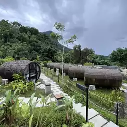 The Culvert Resort Kuching is a unique resort located in Kuching, Malaysia with rooms set in converted culvert pipes set amidst lush greenery. Each room is designed with modern amenities and features a private outdoor deck. The resort provides a serene environment with lots of add on activities like jungle trekking and river cruises. It's a distinctive and eco-friendly stay near Kuching's natural attractions.