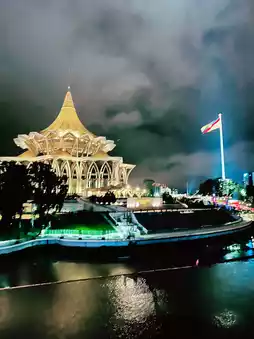 The Darul Hana Bridge, gracefully spanning the Sarawak River, is a must-visit landmark at the Kuching Waterfront. Its unique S-shaped design and modern architecture beautifully contrast with the historic charm of surrounding buildings.
