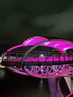 The Darul Hana Bridge is one of Kuching’s most iconic landmarks, especially stunning at night when it lights up in vibrant, ever-changing colors. This S-shaped pedestrian bridge stretches gracefully across the Sarawak River, offering panoramic views of the city’s waterfront and skyline. A walk along the bridge provides the perfect opportunity to admire the majestic Sarawak State Legislative Assembly building, with its golden, umbrella-like roof glowing beautifully in the evening light.