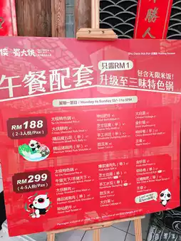The restaurant’s interior is a visual feast—traditional Chinese design elements, vibrant red décor, and a ceiling adorned with glowing tanglungs create an immersive and culturally rich atmosphere. Whether you’re a hotpot aficionado or new to the experience, Shudaxia Hotpot delivers authentic taste and stunning ambiance right in the heart of Kuching.