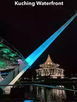 The Kuching Waterfront is a must-visit destination, blending natural beauty with stunning architecture. One of its most iconic features is the Darul Hana Bridge — a graceful, modern structure that offers panoramic views of the Sarawak River.