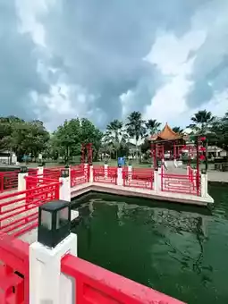 The majestic statue of Admiral Cheng Ho stands proudly at the entrance, representing historical ties and mutual respect between the two nations. Visitors are greeted with calm water reflections, vibrant flowers, and picturesque views that make every corner feel peaceful and inspiring. Whether for a leisurely stroll, photography, or quiet relaxation, this park offers a perfect blend of cultural beauty and natural serenity — truly a must-visit destination in Kuching.