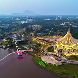 During the daytime, the Waterfront offers excellent view of the north bank of the river. The Astana (governor’s mansion) and Fort Margherita stand out with their white exterior. The imposing State Assembly Building dominates the skyline. In addition, the Malay kampungs bring up a piece of Sarawak’s heritage that dates back to the rule of the Brooke family.