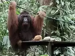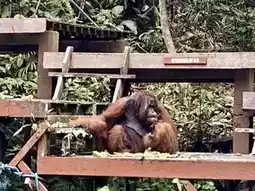 This wildlife center is home to a thriving population of healthy juvenile and young adult semi-wild orangutans. Most of the time they roam the forest, but they are taught to return to the center at feeding time, where they can get food from the rangers.