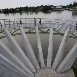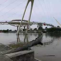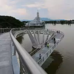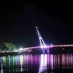The Darul Hana Bridge spans over Sarawak River, connecting Kuching Waterfront with Sarawak Legislative Assembly Building (DUN). It is also known as Golden Anniversary Bridge, which is intrinsically linked to the identity of the city. It provides pedestrian access to the city centre attractions such as the Plaza Merdeka shopping mall, the international hotels strip and the cafes at the old Court House.