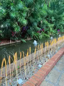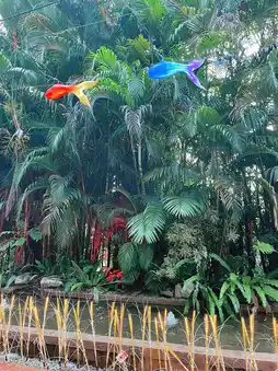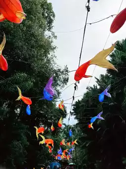 The MBKS Garden beside the Kuching Festival grounds is a beautiful, scenic spot that’s a must-visit for anyone exploring the city. By day, it’s a peaceful green escape filled with lush trees, colorful flowers, and charming pathways. By night, the garden transforms into a glowing wonderland, decorated with fish-shaped lanterns, artistic murals, and twinkling lights that create a magical atmosphere.