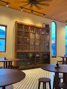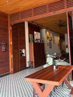The interior is beautiful. There are many antique items. And the old vespa is so cool! The wood surrounding the shop beautifies the coffee shop itself despite being in a fishing village area.