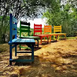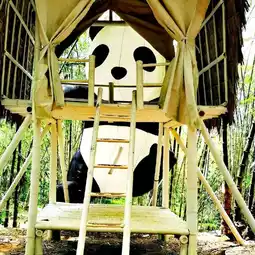 There have swings and bamboo huts mostly made of bamboo, adorable panda inflatable dolls, big rainbow colours chairs and the Japanese vibes, lush bamboo forest, shrines, and rainbow backdrops make it become an Instagram-worthy spot, many peoples like influencers come here to take picture.
