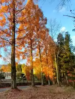 From mid-November to late November, the metasequoia tree-lined path of Kuma Country Club, which can be accessed from National Route 33, turns brown in autumn.