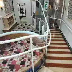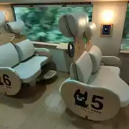 specifically for children passengers. There are colorful seats decorated with the cartoon character KURO or the black dog