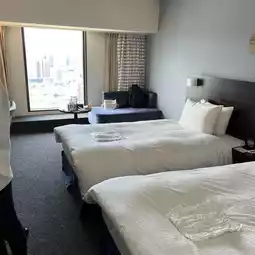 After 6 hour of flight 1 hour one trek. Finally arrive at Kumamoto check in at crown plaza new sky . Is about 10min walk from the train station . Was upgraded to a premium floor with nice view . Room size a bit the small but is normal in japan .. check in time was 3pm but was allow to check in at 11 since the room is ready .. ok prepare to venture out first is to find food 。 #japan #crownplaza #kumamoto