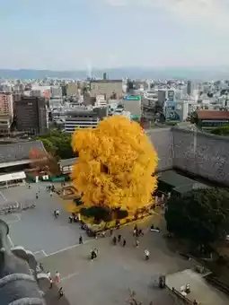 Autumn🍁—Kumamoto Castle, also known as Ginkgo Castle, is a breathtaking spectacle of golden ginkgo trees.✨️ Ginkgo leaves drifting in the wind create a carpet of golden leaves.