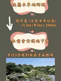 ⏩️Get off at Suizenji Park Station✅Walk 3 minutes to Suizenji Jojuen Garden