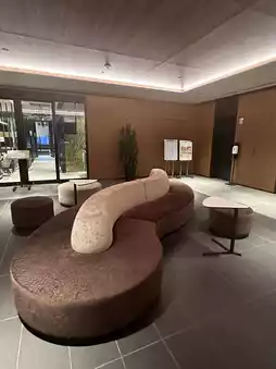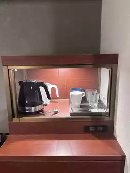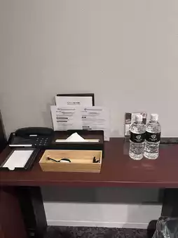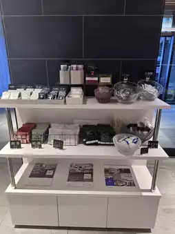 The amenity bar in front of the front desk