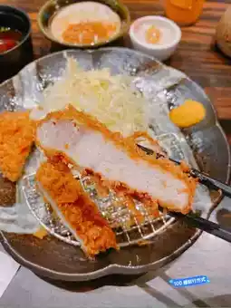 The thick deep-fried pork cutlet is made from Rokuhaku Kurobuta pork. Compared to ordinary pork,
