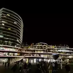 Beside Kumamoto Castle and the Main Street shopping strip. Bus terminal is located within.