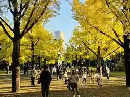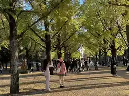 This place is very beautiful during the autumn leaves season. There are rows of ginkgo trees, bright yellow, with light reflecting in the afternoon. Many people come to walk around and take photos.