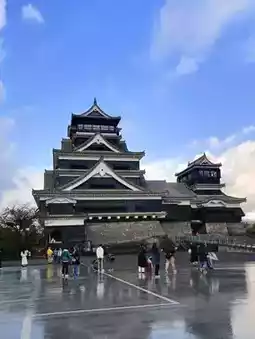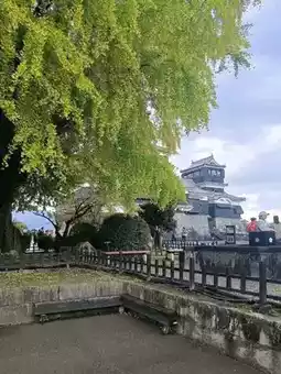 The castle's exterior is stunning, having been rebuilt after the 2016 earthquake. If you visit during the fall foliage season, you can take photos with the ginkgo trees next to the castle.