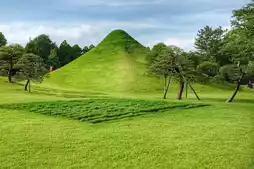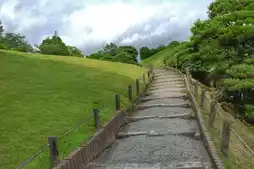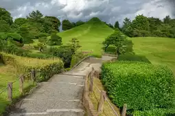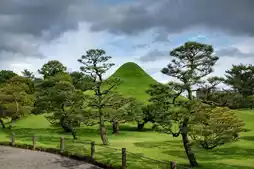 The garden reproduces the 53 post stations of the Tokaido, the important road, which connected Edo with Kyoto during the Edo Period, in miniature form, including a small Mt. Fuji.