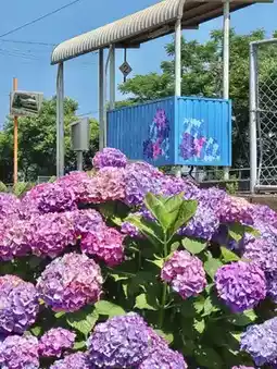 Today, I'll introduce you to a hidden hydrangea spot that only a few people know about! Sumiyoshi Station🚉, an unmanned station on the Sankaku Line, is a spot where colorful hydrangeas bloom in full glory during the rainy season✨️It's a recommended hydrangea spot that is not well known yet, and it spreads all around the area around the station👏In addition to being free to view, you can also enjoy taking pictures of the hydrangeas and trains✨️The surrounding area is privately owned, so please be mindful of your manners when taking photos and enjoy them😊
