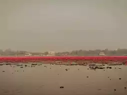 Every December to February, tens of thousands of crimson water lilies bloom, transforming the lake into a vibrant sea of pink.