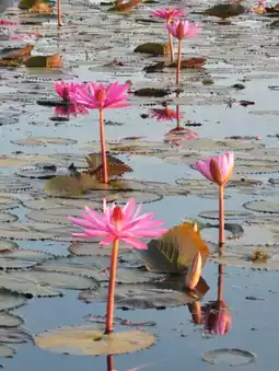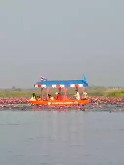 For those looking for a beautiful natural experience, a boat trip to the Red Lotus Sea in Udon Thani is a must. 🪷🚤 It's a truly amazing experience! The water is filled with vibrant red lotus flowers, blooming brightly on the water's surface. 🌅✨ The boat slowly sails, offering a panoramic view that feels like a painting. 📸💛 Plus, the morning mist creates a romantic and peaceful atmosphere. 🌫️💕 It's perfect for relaxing, breathing in the fresh air, or capturing memorable photos with friends, family, or that special someone. 🥰