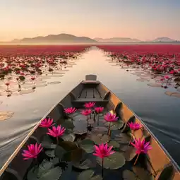 Marvel at the fields of millions of pink, red, and purple lotuses blooming across the water.