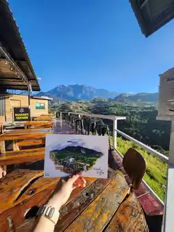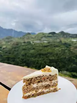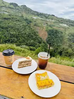 Grab a drink, pick a book, and enjoy the rustic wooden benches while the clouds roll over the mountains in the background. I love spots that mix nature and knowledge—and this place does it so well.