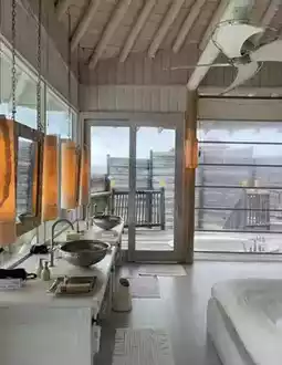 The retractable roof above the master bedroom is another highlight. At night, just press a button, and the roof slides open, allowing you to lie in bed and gaze at the pure Maldivian starry sky.