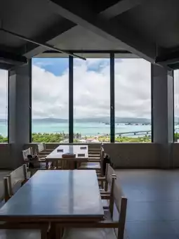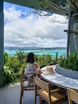 They are open for dinner, but we recommend lunch, where you can dine while looking out at the beautiful Kouri blue sea and sky. You can also get a great view of the Kouri Bridge, making it a great location.