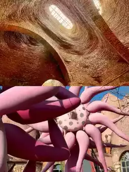 There are two eye-catching interactive art installations in the courtyard, '24 Solar Terms' and 'Sound of the Ocean'. The pink thighs can be slightly rotated, and you can hear magical notes next to the fish's eyes.
