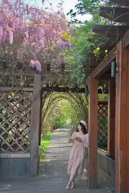 Taking photos on the road where plum blossoms, crabapple flowers, and wisteria bloom looks so beautiful.