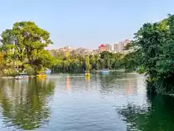 Cuihu (Green Lake) Park is surrounded by water and greenery, with bamboo and willow trees flourishing throughout the year, giving it its name. Known as the 'Green Jewel' of Kunming, this park boasts a long history and rich cultural background. During the late Yuan Dynasty, it was called 'Caihaizi,' and in the Qing Dynasty, it was also known as 'Jiulongchi.' Later, during the reign of Emperor Daoguang of the Qing Dynasty, the Ruan Dike was built, and during the Republic of China period, the Tang Dike was constructed, giving the park its current appearance.