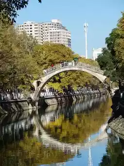 Standing on the bridge, you can have a panoramic view of the seagulls on the river.