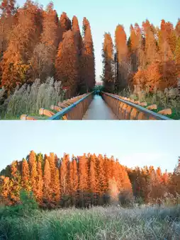 The bald cypress, Chinese swamp cypress, and dawn redwood are all red and golden